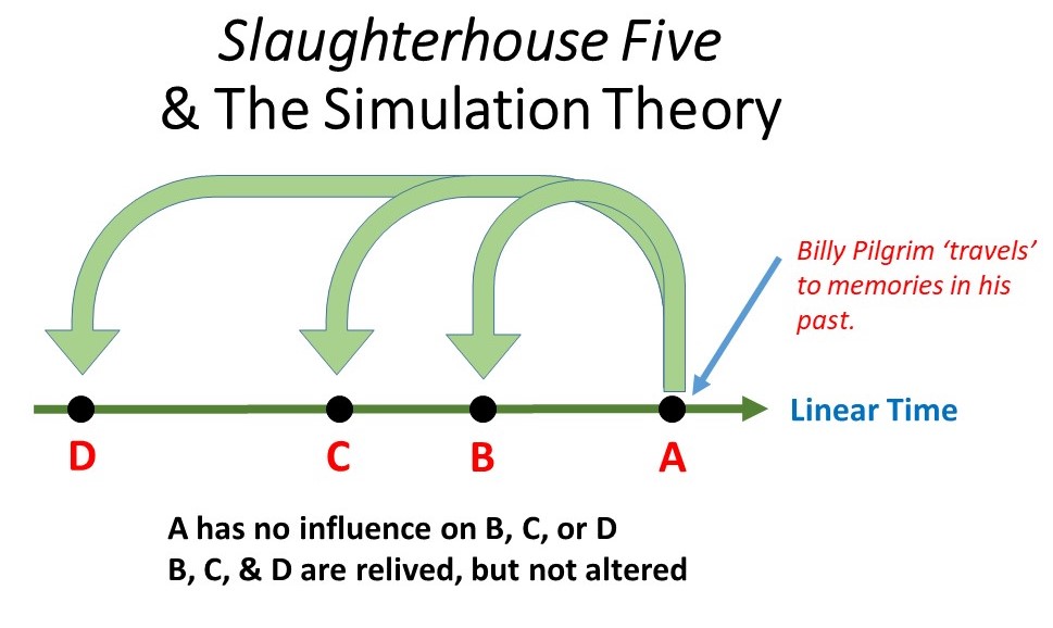 Consider Slaughterhouse Five by Kurt Vonnegut Jr. Billy Pilgrim, a character based on Vonnegut’s own life, relives his memories in a nonlinear fashion. Some people would suggest he is not ‘time-traveling’ but rather experiencing Post-Traumatic Stress Disorder (PTSD). But let’s consider for a moment that PTSD is a kind of time travel, one where the subject is forced to relive—without being able to alter—a traumatic memory. This idea borders on the macabre, yes, but Billy Pilgrim is the most-plausible time-travel scenario, one where a person can visit the past again and again while changing nothing and feeling everything. Not the high-tech, sci-fi mechanisms audiences are used to, but still time travel nonetheless.
